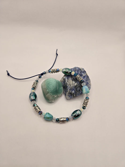 Amazonite and Larimar Blue Crazy Lace satin wire bracelet