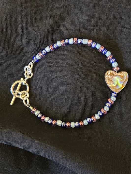 Copper wire bracelet with twisted silver/brass wire and Blue glass seed beads